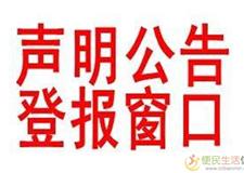 登报业务范围:各类遗失声明、登报挂失、遗失登报、登报声明、声明公告、讣告、注销公告、注销登报办理、注销公告、减资公告、歇业公告、律师声明、清算公告、变更公告、股权转让、上市公告、敬告通告、寻物启事等,
